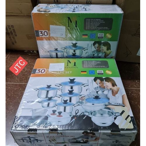 The Marwa 30-Piece Stainless Steel Cookware Set offers everything you need for efficient, stylish, and high-performance cooking. Made with premium stainless steel and featuring non-stick interiors, this set is ideal for both everyday and advanced culinary tasks.