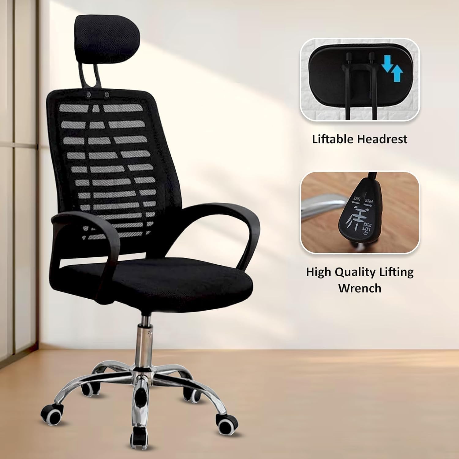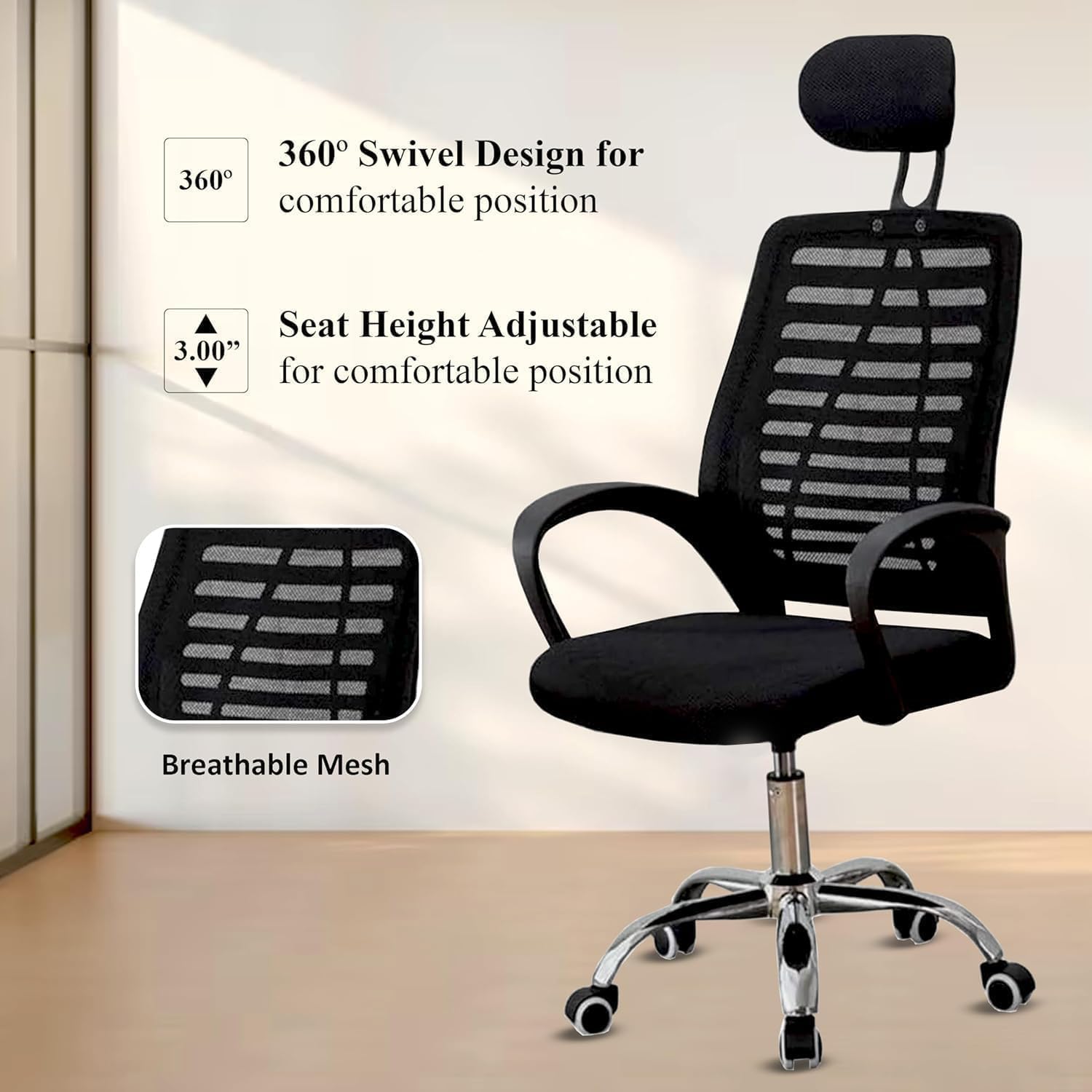 Upgrade your workstation with the Ergonomic Mesh Office Desk Chair, combining breathable comfort with full adjustability. Designed for long hours of work or study, this high-back chair features a mesh backrest, rocking function, adjustable headrest, and padded armrests for optimal support and posture alignment.