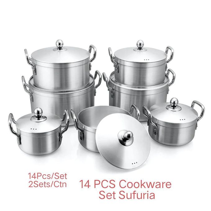 “Upgrade your kitchen today – order your TC 17-Piece Heavy Aluminium Sufuria Set now and enjoy cooking with style and efficiency!”